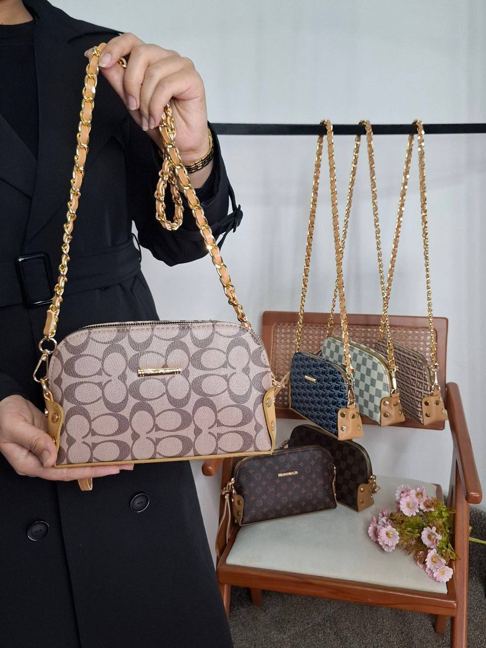 کیف دوشی زنانه بند دار با یراق طلایی کد 359