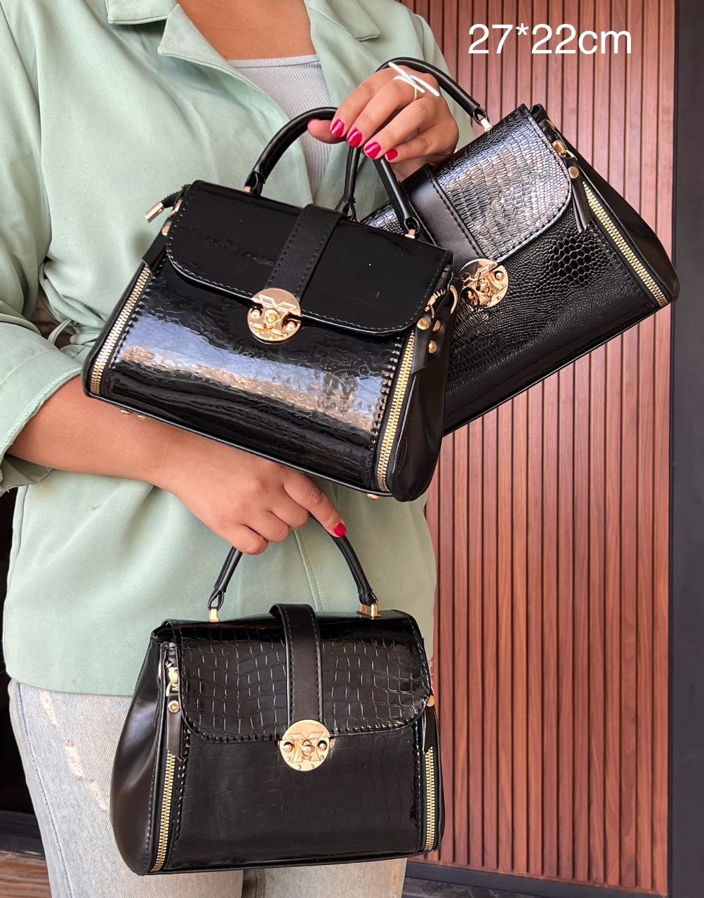 کیف ورنی زنانه یراق طلایی مدرن کد 295