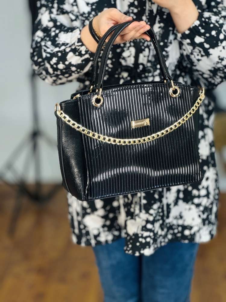 کیف ورنی زنانه یراق طلایی مدرن کد 295