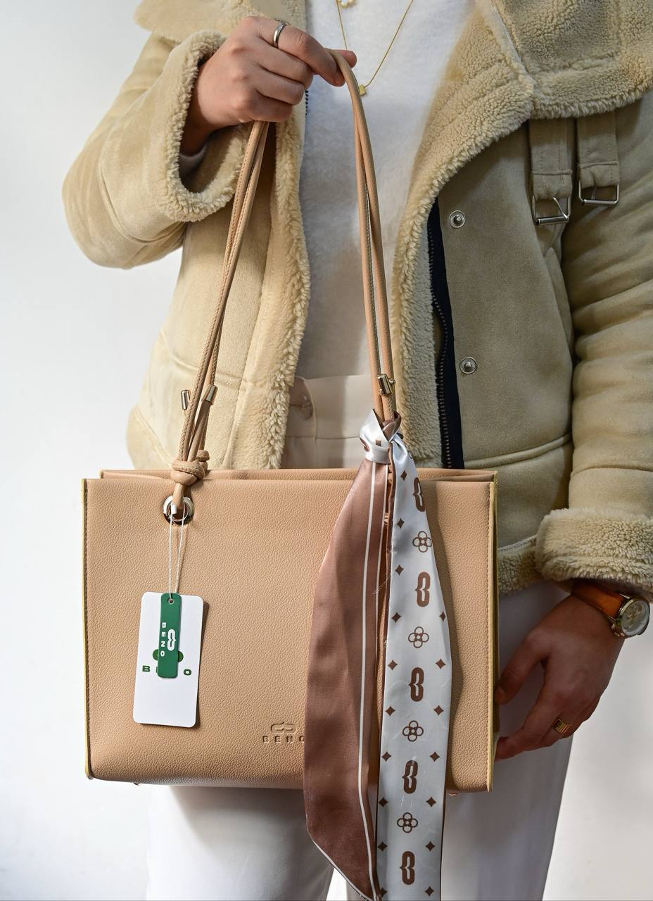 اسکارف تزیینی بهعنوان یک جزئیات ترندی، جلوهای خاص و زنانه به طراحی کیف اضافه کرده و آن را از مدلهای ساده متمایز میکند. بند دوشی خوشفرم، حمل کیف را روی شانه راحت کرده و فضای داخلی آن برای قرار دادن وسایل ضروری روزمره مانند موبایل، کیف پول و لوازم شخصی کاملاً پاسخگوست. این کیف برای خانمهایی که به ظاهر شیک، کاربردی و بهروز اهمیت میدهند، انتخابی مقرونبهصرفه است.