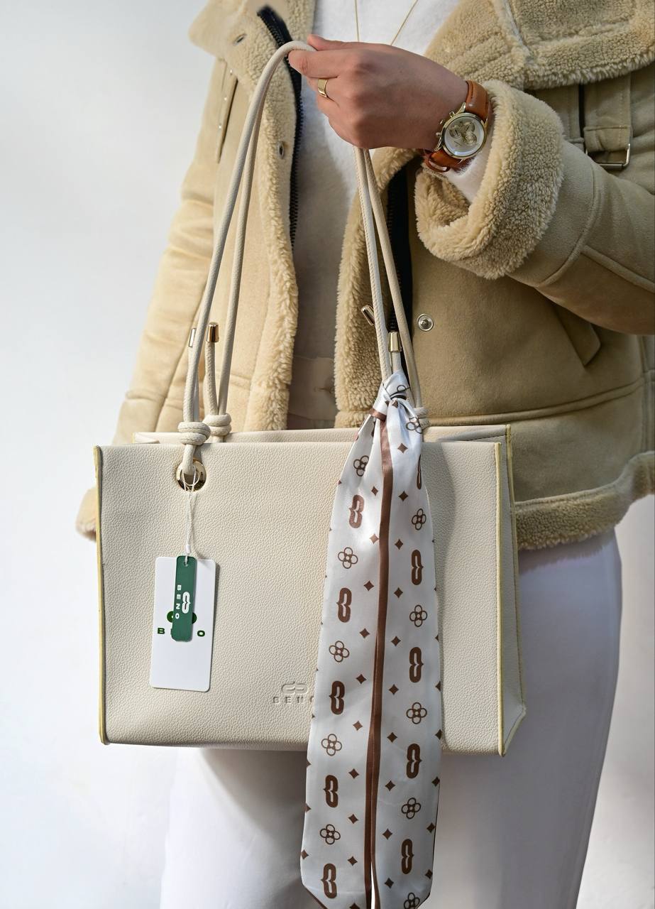 جنس شرانگ بهکاررفته در این کیف، هم جلوهای تمیز و شکیل دارد و هم برای استفاده مداوم کاملاً مناسب است. اسکارف ظریف بهعنوان یک جزئیات ترندی، ظاهر کیف را متفاوت و چشمگیر کرده و حس زنانهی ملایمی به استایل شما میدهد.