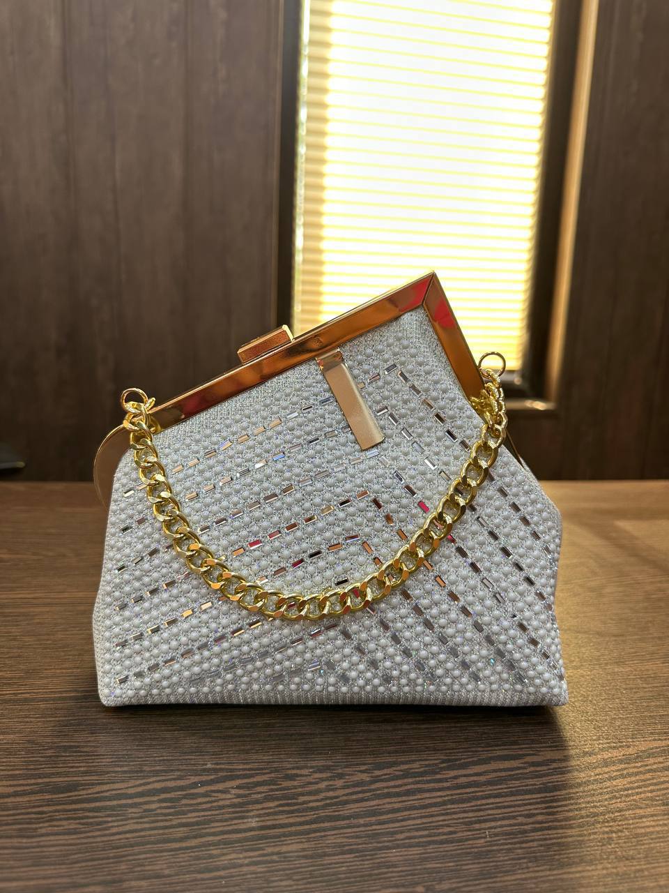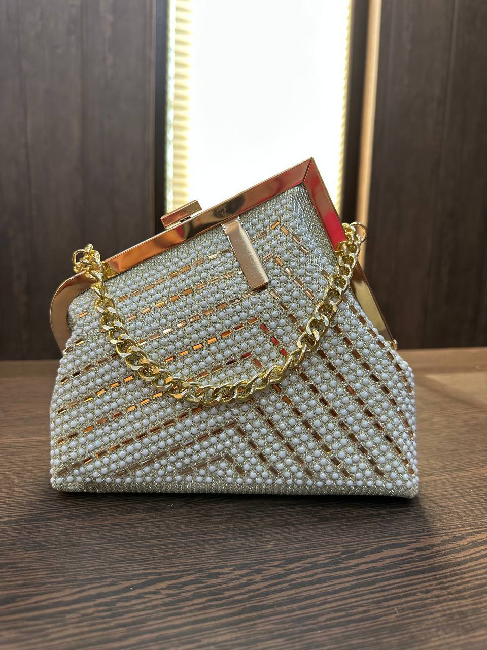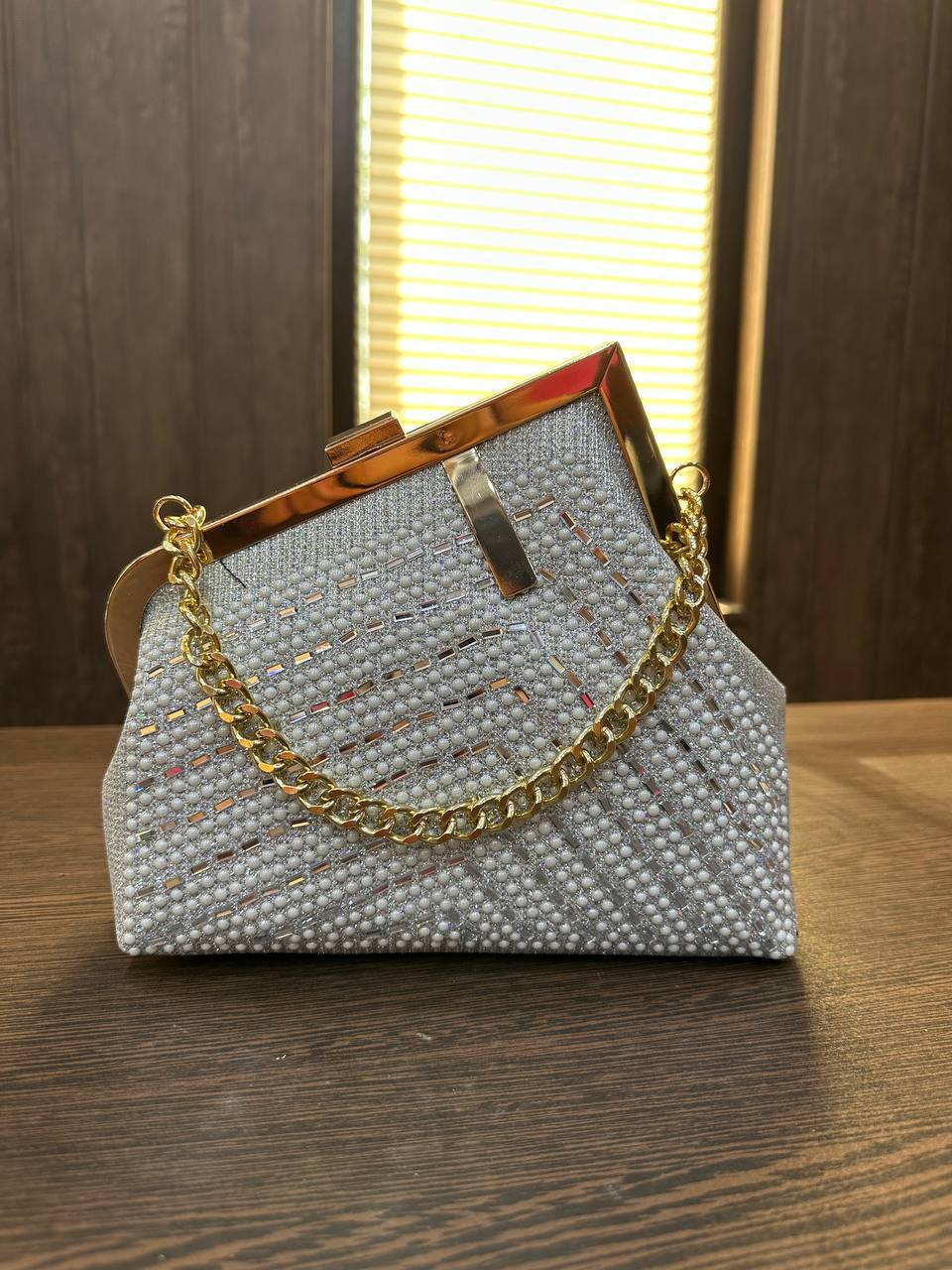 کیف مجلسی دهنه فنده نگین مرواریدی کد 546