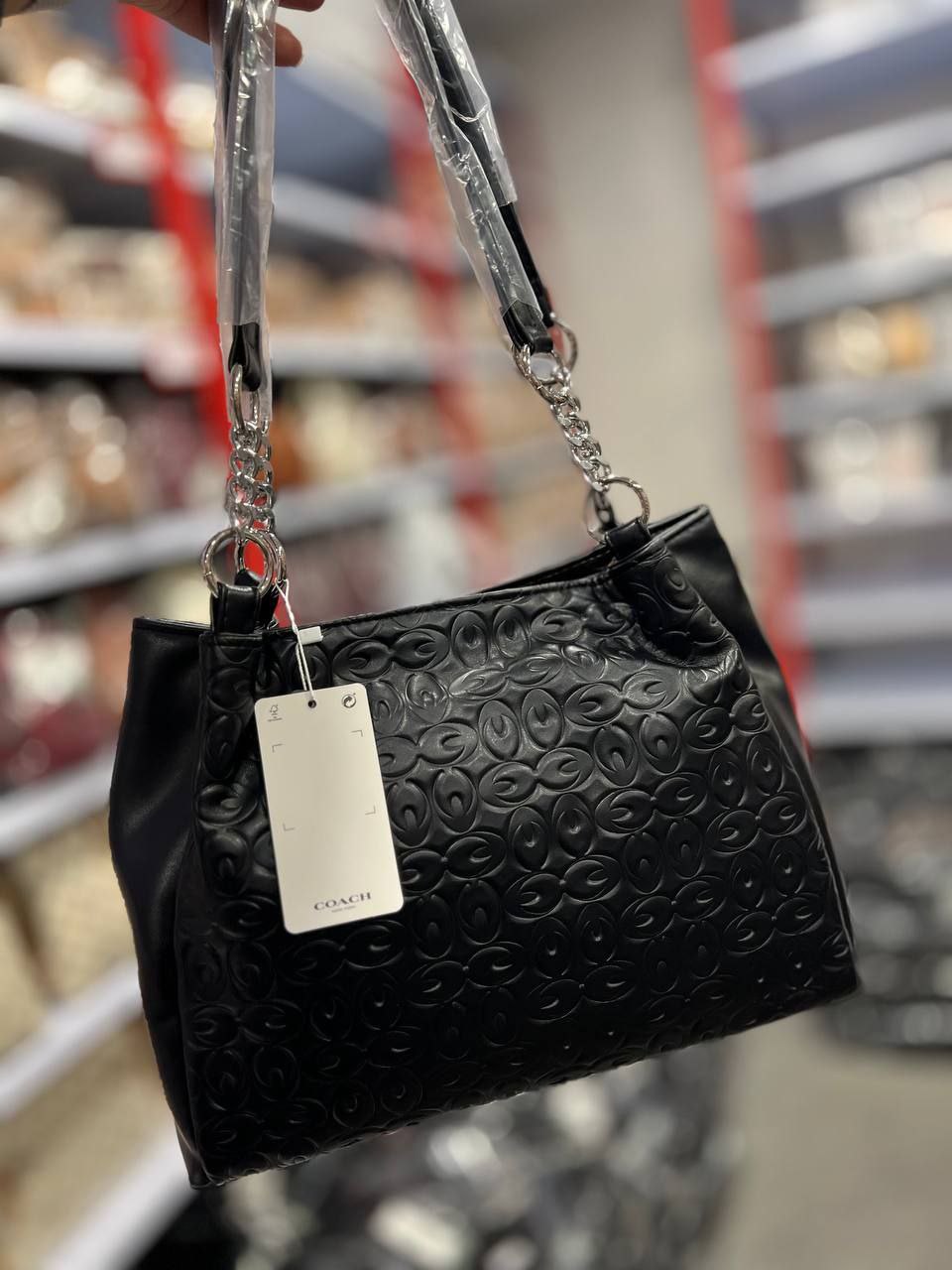بدنه کیف از چرم مصنوعی باکیفیت ساخته شده و دارای طرح برجسته ظریف است که حس لوکسبودن را در نگاه اول منتقل میکند. این بافت برجسته علاوه بر زیبایی، به مقاومت کیف در برابر خطوخش نیز کمک میکند. بند زنجیری فلزی با رنگ هماهنگ، ظاهر مجلسی کیف را تکمیل کرده و وجود محافظ چرمی روی بند، استفاده طولانیمدت را بدون ایجاد فشار روی شانه ممکن میسازد.