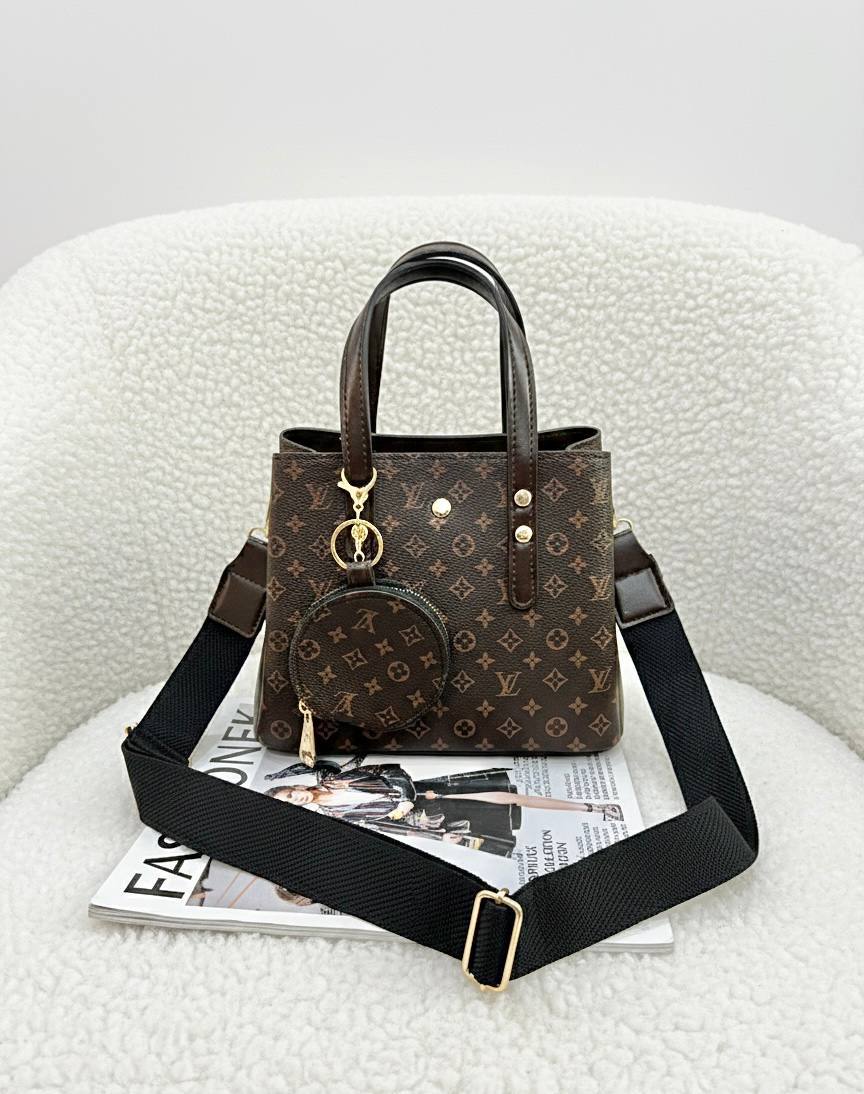 این کیف دستی شیک در پنج طرح متنوع (شامل طرحهای مونوگرام، شطرنجی و ساده مشکی) موجود است تا پاسخگوی سلیقههای مختلف باشد. تمامی مدلها مجهز به آویز سکهای کوچک و متناسب با طرح اصلی هستند. استفاده از یراقآلات و سختافزارهای طلایی رنگ ثابت، کیفیت بصری کیف را به سطح بالاتری ارتقا داده است. این محصول با توجه به طراحی مدرن و کاربردیاش، یک سرمایهگذاری مناسب برای بهروزرسانی کمد لباس شما محسوب میشود.